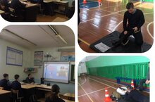 Сегодня учитель ОБЖ Каплин С.А. провел урок Мужества и практическое занятие для юнармейцев , учащихся 8-9 классов.