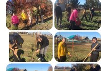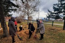 Учащиеся школы а так же и сотрудники вышли на субботник . Прибрали территорию , убрались у памятника ВОВ.
