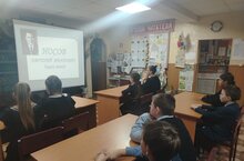 Сегодня ученики 5 класса посетили сельскую библиотеку. Для них было проведено мероприятие на тему: "Сто лет со дня рождения Евгения Носова"