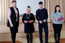 Директор школы Ягудина Л. Р. поздравила участников конкурса "Учитель года" с достойными выступлениями на муниципальном этапе.