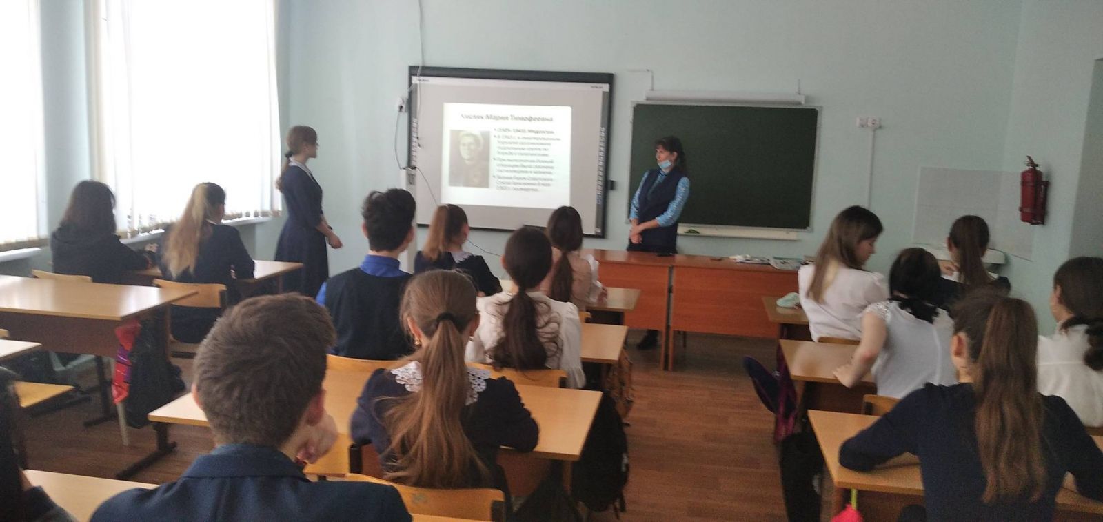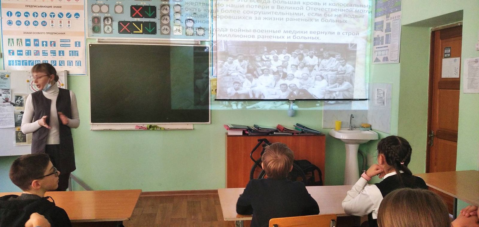 Җиңү көнен бәйрәм итү алдыннан мәктәптә "хәрби табиблар" , "хәрби корреспондентлар", "Пионерлар - геройлар"дигән темага сыйныф сәгатьләре узды. Педагоглар һәм укучылар яраланган солдатларны дәвалаган, туганнарына һәм якыннарына, тынычлык һәм киләчәк буыннарга тормыш саклау өчен башларын салган яшь малайлар һәм кызлар турында сөйләделәр.
