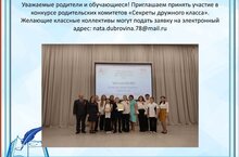 Уважаемые родители и обучающиеся! Приглашаем принять участие в конкурсе родительских комитетов «Секреты дружного класса». Желающие классные коллективы могут подать заявку на электронный адрес: nata.dubrovina.78@mail.ru