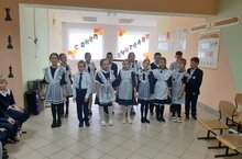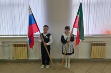 Утро в школе началось с торжественной линейки, выноса флагов и исполнения гимнов России и Татарстана.