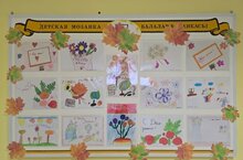 В рамках празднования Всемирного Дня учителя в школе была оформлена выставка детских рисунков.