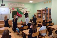 / Бүген 3нче сыйныфта «29нчы ноябрь - Татарстан дәүләт флагы көне» темасына әңгәмә узды. Әңгәмә барышында укучылар флагның һәр төсе нинди мәгънәгә ия булганын искә төшерделәр, Татарстан мәдәнияте һәм тарихы турында белемнәрен киңәйттеләр. -