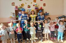 / Мәктәпнең ЮИД отряды балалар бакчасының өлкән һәм әзерлек төркемендә булдылар. Яшь инспекторлар мәктәпкәчә яшьтәге балаларга юлда куркынычсызлык кагыйдәләрен үтәү турында музыкаль тамаша күрсәттеләр, соңыннан балаларга яктылыкны кире кайтара торган беләзекләр өләштеләр һәм аларны кайда һәм ничек киеп йөрергә икәнен аңлаттылар. -