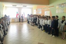 Новая учебная неделя началась с торжественного поднятия флагов и исполнения гимнов.
