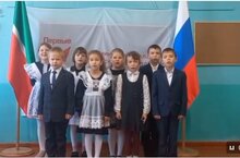Хор юных Орлят России исполнил песню "Вместе весело шагать...". Мероприятие организовано первичным отделением "Движение Первых " -
