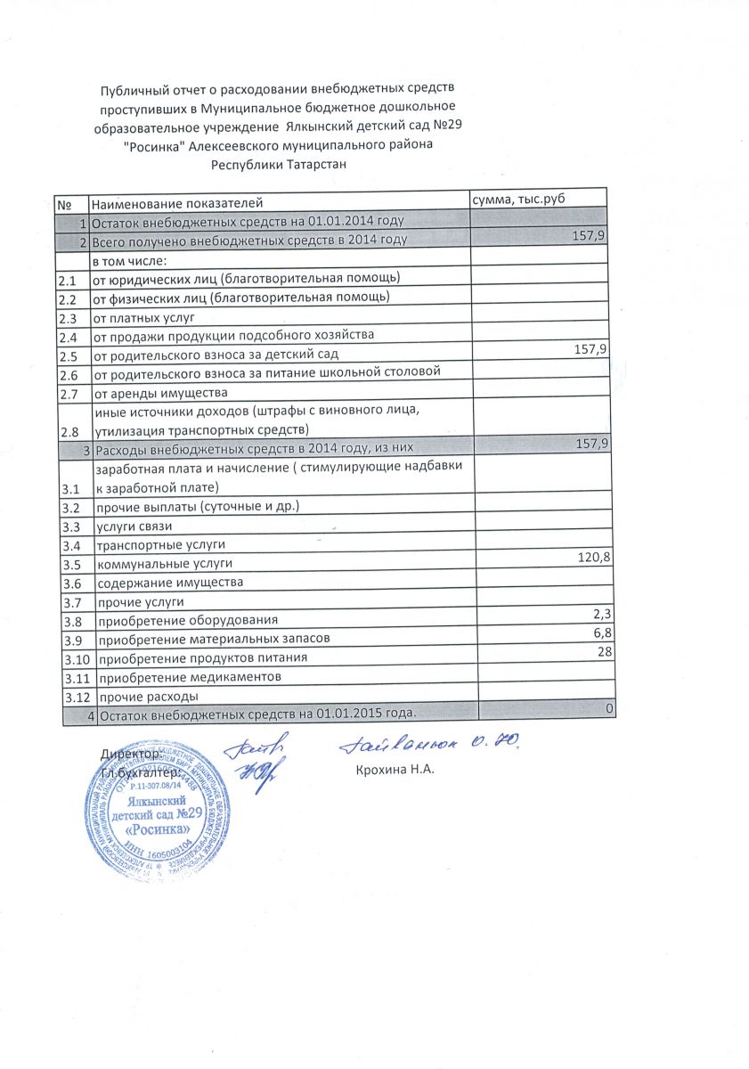 Публичный отчет о расходовании внебюджетных средств на 2014