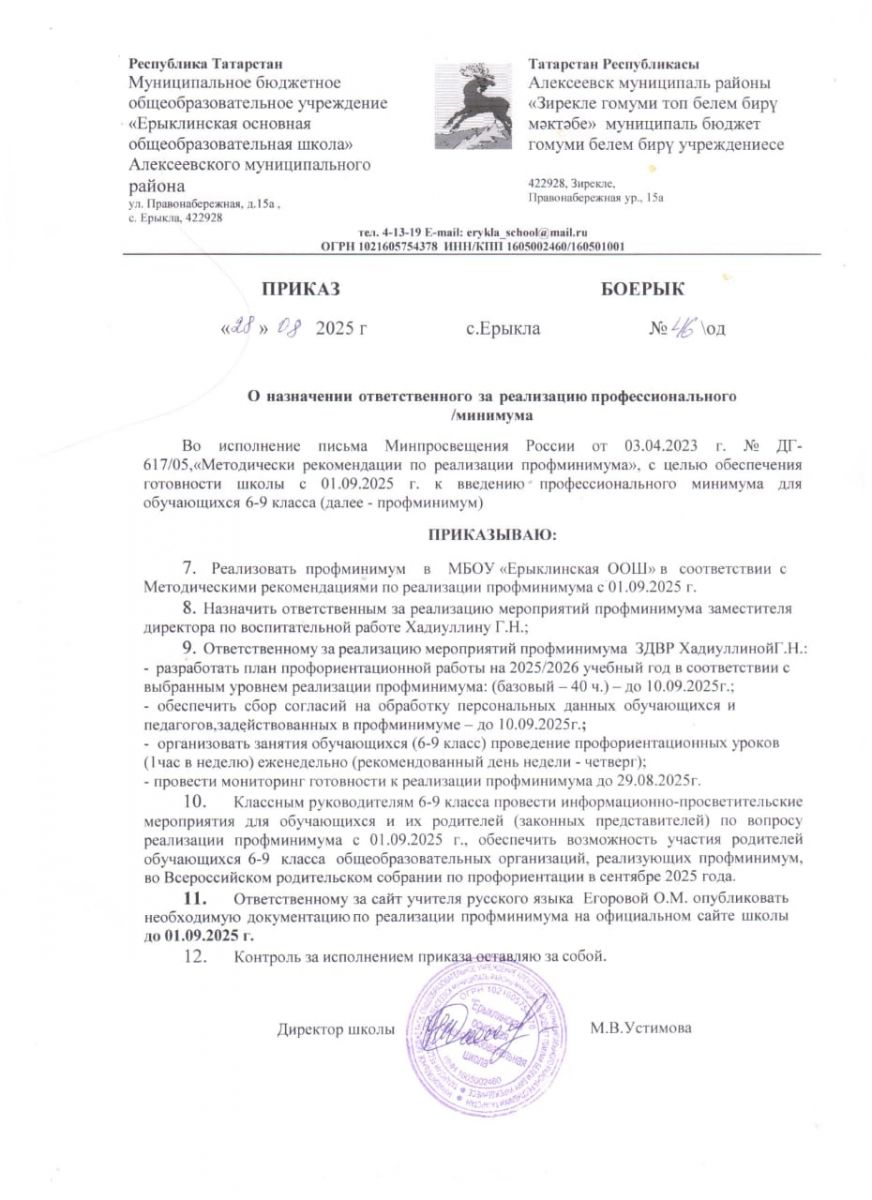 Муниципальное бюджетное общеобразовательное учреждение «Ерыклинская основная общеобразовательная школа» Алексеевского муниципального района Республики Татарстан/Татарстан Республикасы Алексеевск муниципаль районы «Зирекле гомуми топ белем бирү мәктәбе» муниципаль бюджет гомуми белем бирү учреждениесе