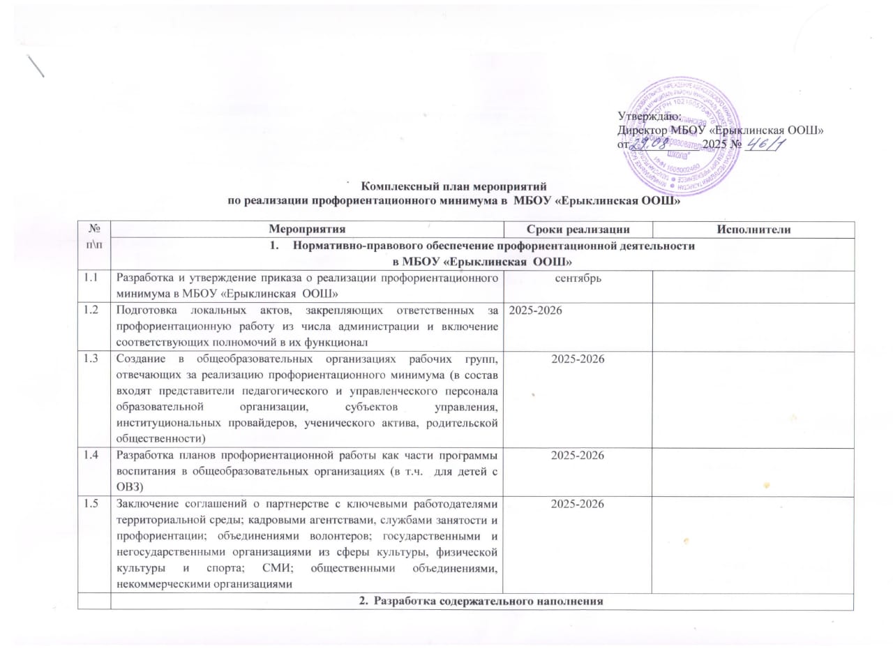 ♦ План профориентационной работы на 2025-2026 учебный год План