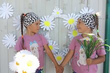 Мы вместе, своими руками изготовили символ праздника - Ромашку и украсили зону для фотовыставки .