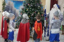 По её "эксклюзивному" туру дети отправились к Деду Морозу, но вместо его северной резиденции оказались сначала в Тридевятом царстве. Там их радушно встретили могучие Богатыри, которые не только удивили своей силой и доблестью, но и своим прекрасным танцем.