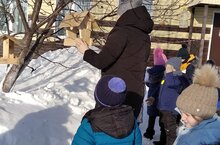 Язның беренче көнендә, кошларның азык табуларын кайгырту йөзеннән, балалар белән җимлеккә тары ярмалары, көнбагышлар салдык. Балаларның кошлар турындагы белемнәрен киңәйттек, аларга карата мәрхәмәтлелек, шәфкатьлелек хисләре тәрбияләдек.