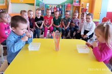 Воспитанники средней группы на световом столе для рисования песком изображают летний день.