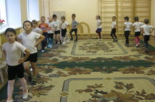 Ежедневно воспитанники детского сада в соответствующей форме выполняют утреннюю гимнастику под музыкальное сопровождение.
