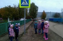 Воспитатель Гулия Минхарисовна с воспитанники подготовительной к школе группы закрепляют знания по безопасному поведению на дороге.