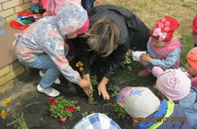 Воспитатель старшей группы Хафизова Э.Х. с воспитанниками посетили универсальную спортивную площадку «Парк Героев» построенная по инициативе партии «Единая Россия» с целью посадки цветов на газоне: бархатцов, астры и бессмертника. 28.06.2016