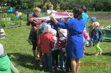 Воспитатель 1 старшей группы Гатина Гулия Минхарисовна с воспитанниками провела в "Парке героев" физкультурное занятие на тему: "В здоровом теле, здоровый дух". Дети упражнялись в беге на скорость, в бросании мяча в ходьбе и ловле его одной рукой. Повторили игровые упражнения с бегом и прыжками. 16.05.2016