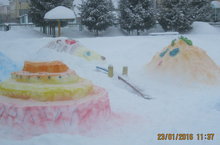 Воспитатели создают развивающую среду для детей на участках детского сада яркими постройками из снега. 23.01.2016