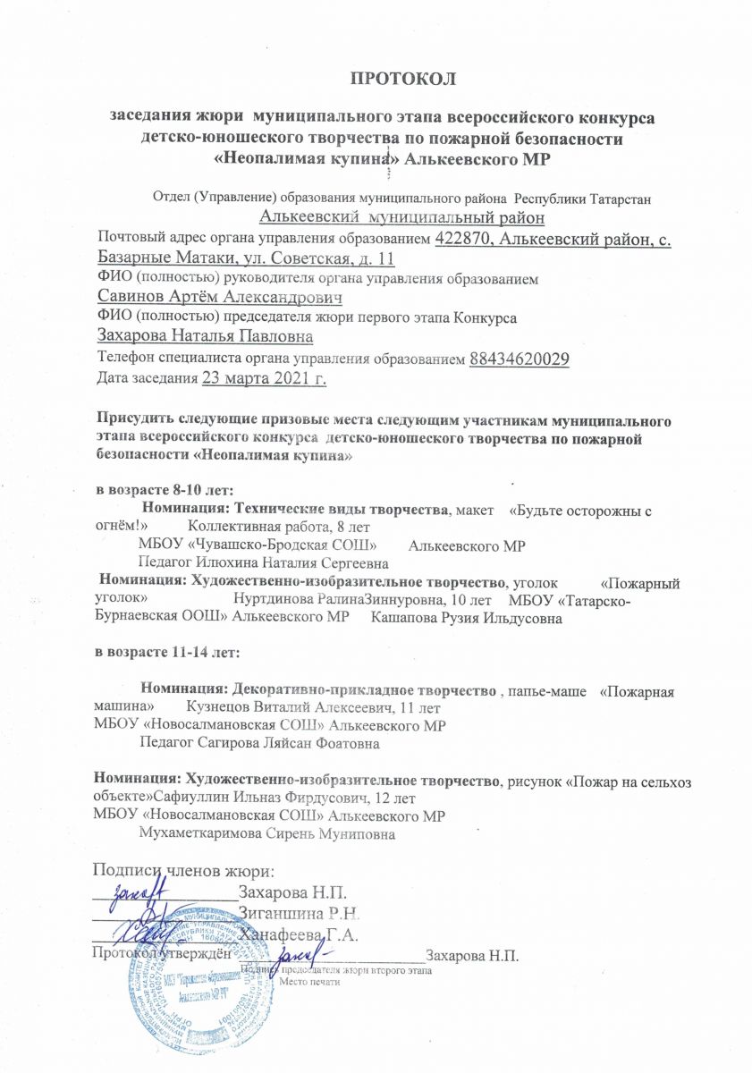 РДОО Протокол муниципальный этапа Актив года 2021 Алькеевского МР