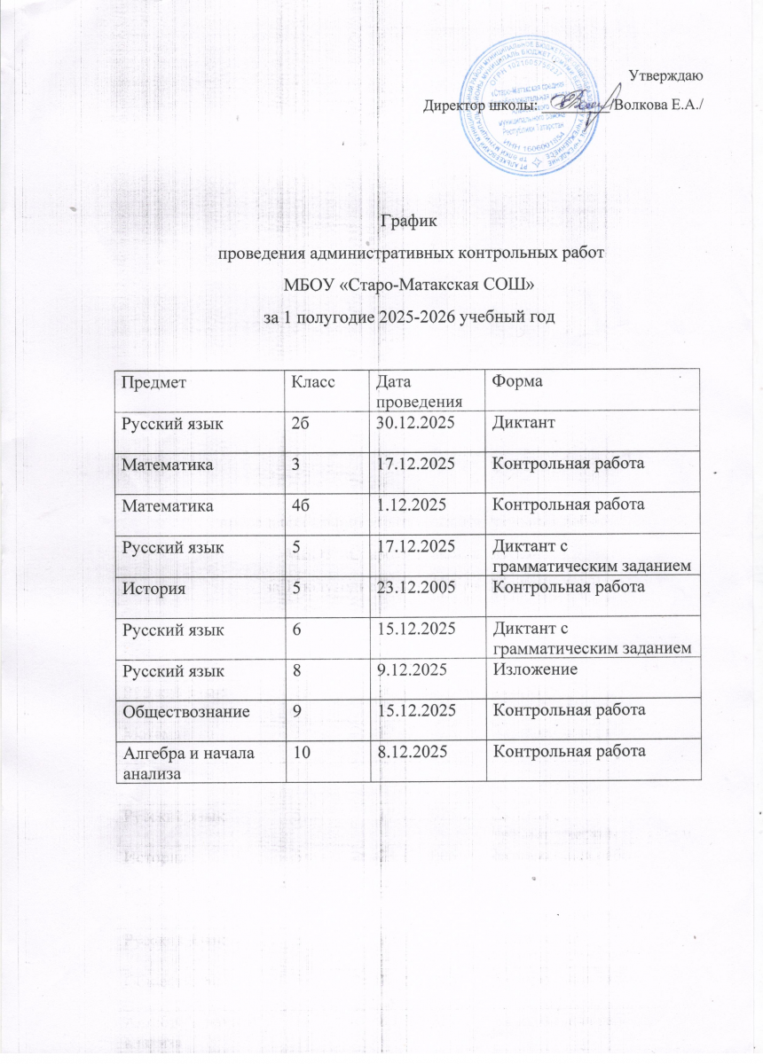 График промежуточной аттестации Старо-Матакской СОШ