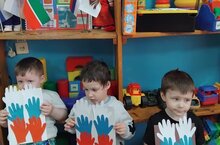 К предстоящему празднику "День народного единства" дети выполнили аппликацию на вырезанных из цветной бумаги ладошек,создавая яркие, символичные флаги России.