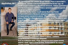 26 сентября в школе проходили выборы президента. Каждый кандидат представил свою предвыборную программу. Победу одержал активный участник школьного правительства, ученик 10а класса -Калимуллин Нияз.