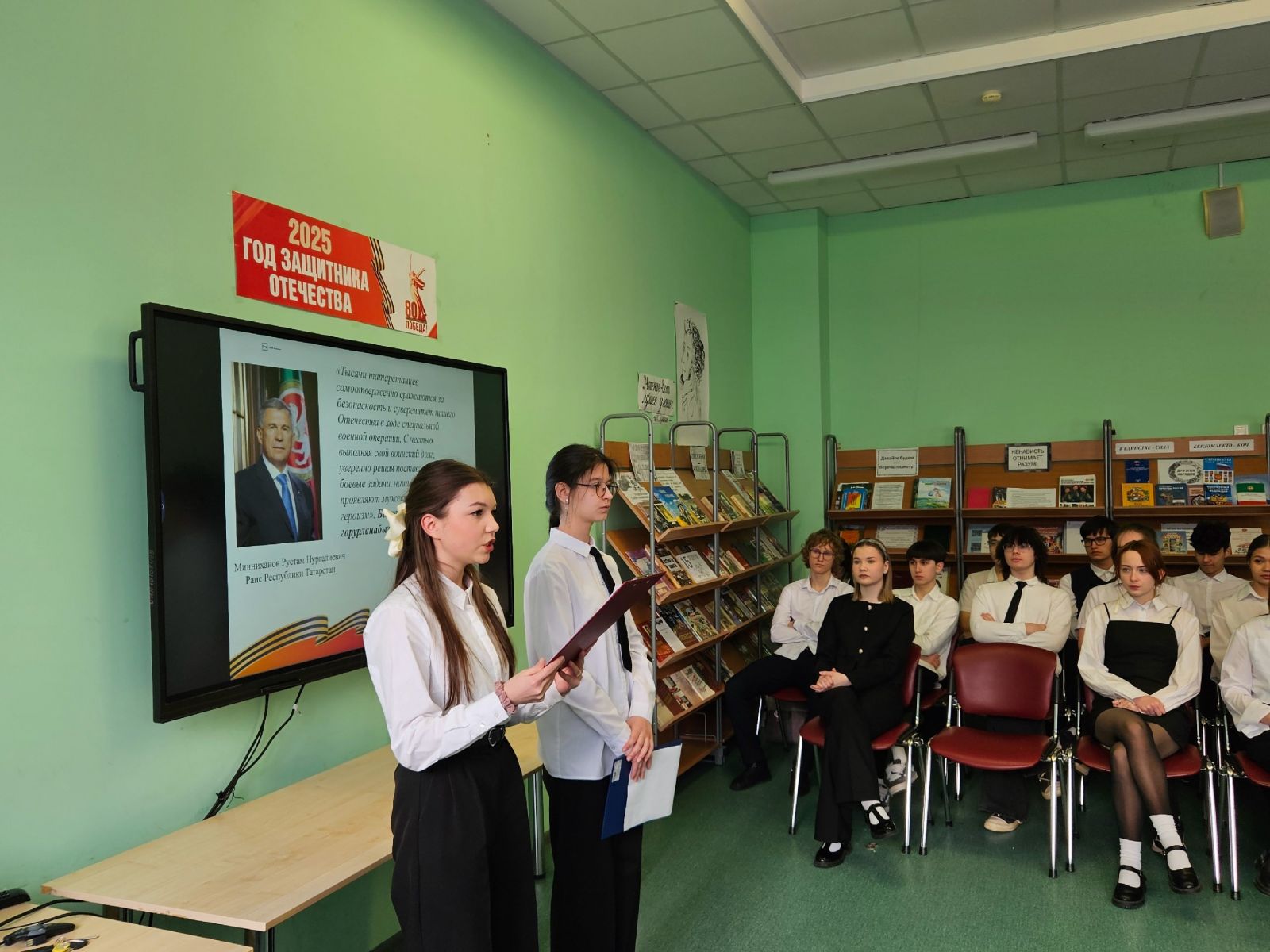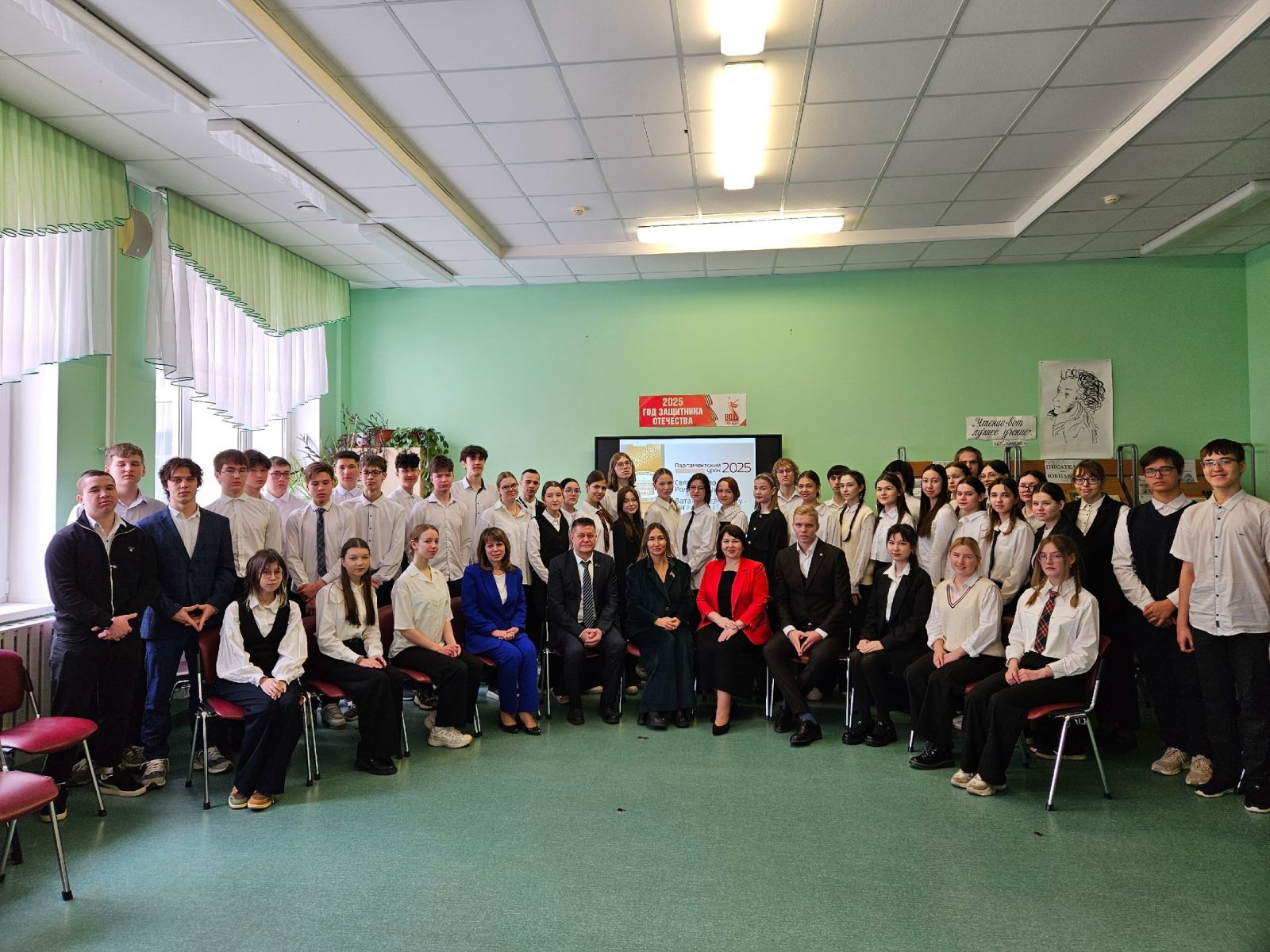 В этом году парламентский урок проходит на тему: «Святое дело – Родине служить!» («Ватанга хезмәт итү – изге бурыч!») и посвящен объявленному в Татарстане и России Году защитника Отечества и 80-летию Победы в Великой Отечественной войне.