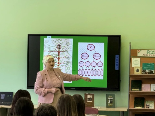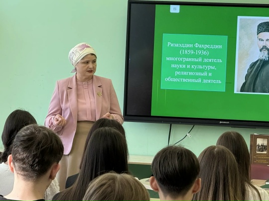 Диляра Гимранова поделилась с ребятами историей жизни и творчества Ризаэддина Фахретдина, подчеркнув значимость семейных традиций и ценностей в формировании личности. Она рассказала о том, как наследие Ризаэддина Фахретдина продолжает вдохновлять современные поколения, прививая уважение к старшим, любовь к семье и обществу.