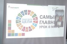 Сегодня в нашей школе Краснова А.В. волонтер компании ПАО "Татнефть" по программе "Посланники ЦУР Татнефти"" провела комбинированный обучение онлайн "Самый главный урок в мире"