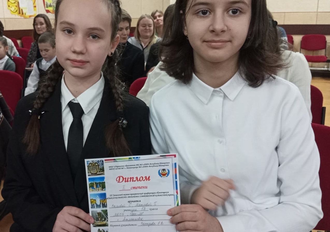 Поздравляем призеров конференции - Чумакову Марусю и Захарова Матвея (III место), Валиеву Софию и Мятлеву Полину (II место)!!!