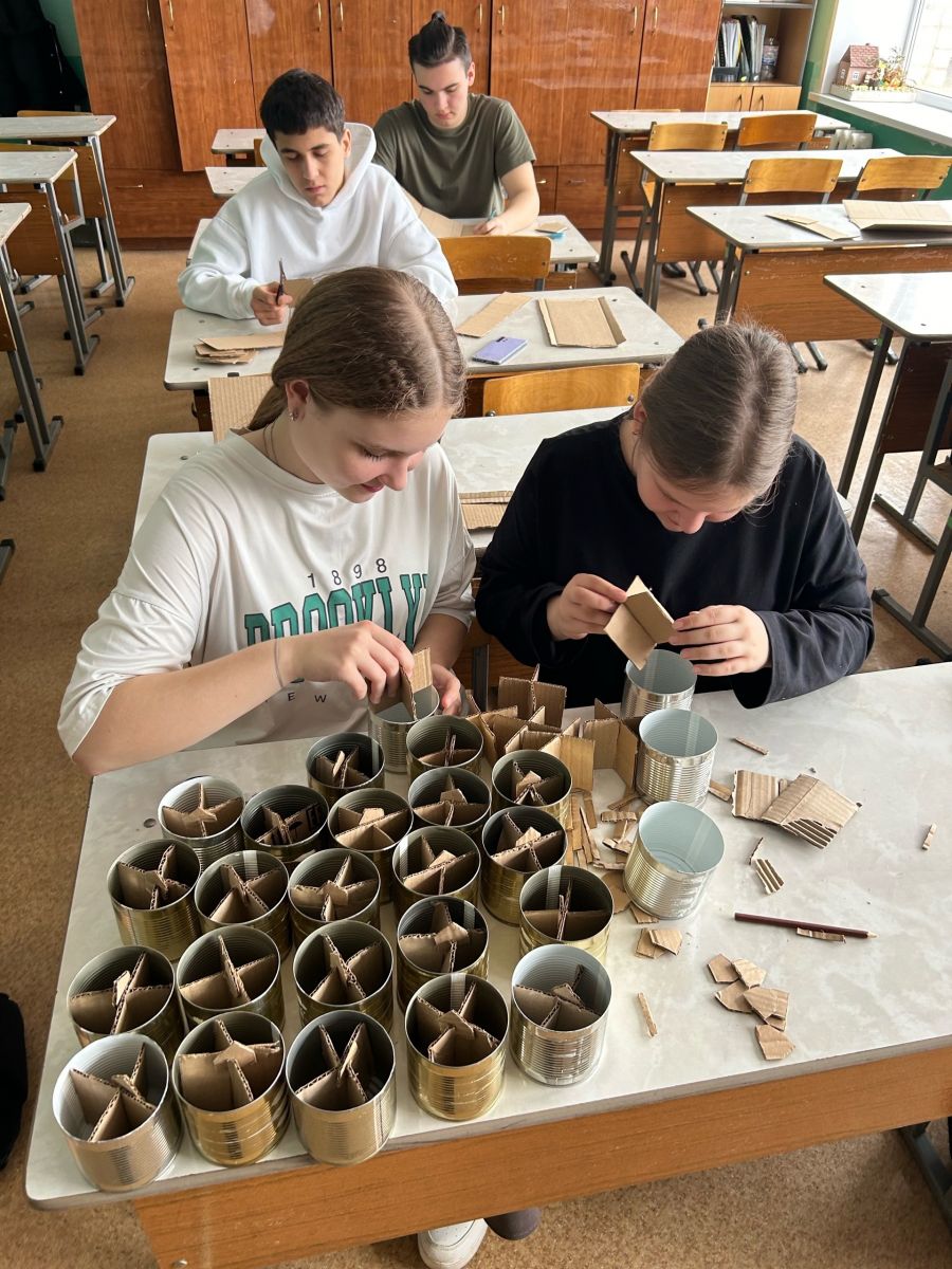 Опубликовано: 25.03.2025Сегодня обучающиеся 8а, 8б и 9в классов вместе с учителем физики Ившиной Н.Н. приняли активное участие в изготовлении заготовок для блиндажных окопных свечей. Не в первый раз Наиля Науфаловна проводит для учащихся подобный мастер-класс.