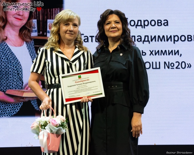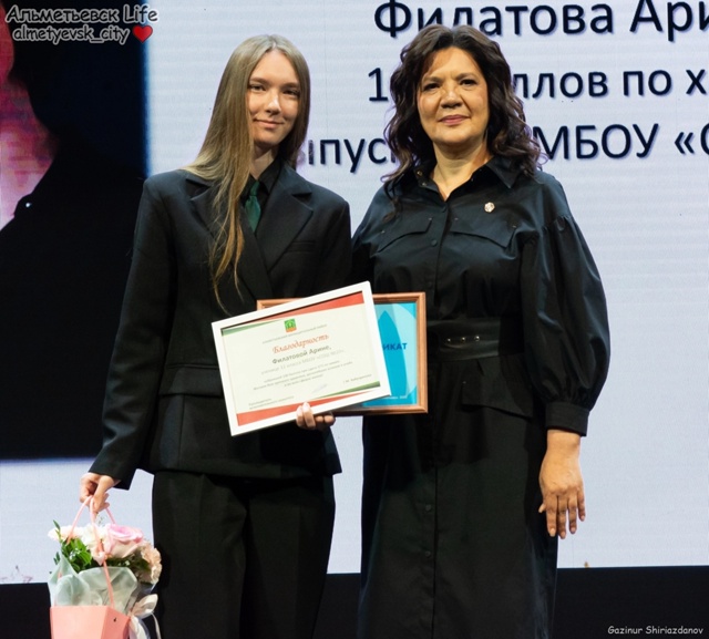 Также были вручены благодарственные письма учителям, подготовившим стобалльников: Бодровой Татьяне Владимировне - учителю химии и Микаиловой Лейле Фаридовне - учителю русского языка и литературы.
