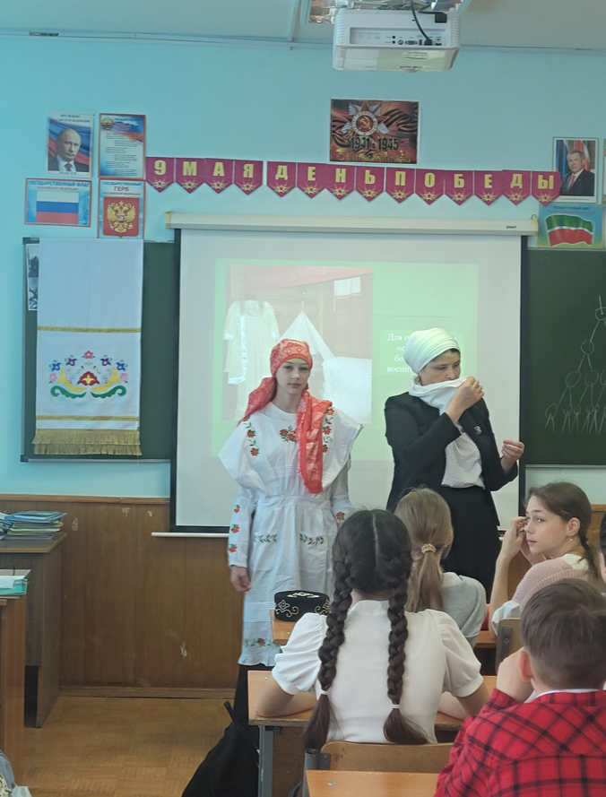 Директор мемориального музея Д. Г. Гимранова провела для ребят увлекательное занятие. Учащиеся узнали о традициях татарской семьи; рассмотрели предметы быта и обихода; изучили узоры на семейных полотенцах и элементы татарского орнамента. Также школьники прослушали лекцию о важности сохранения семейных ценностей. Всего в мероприятии участвовали 26 человек.