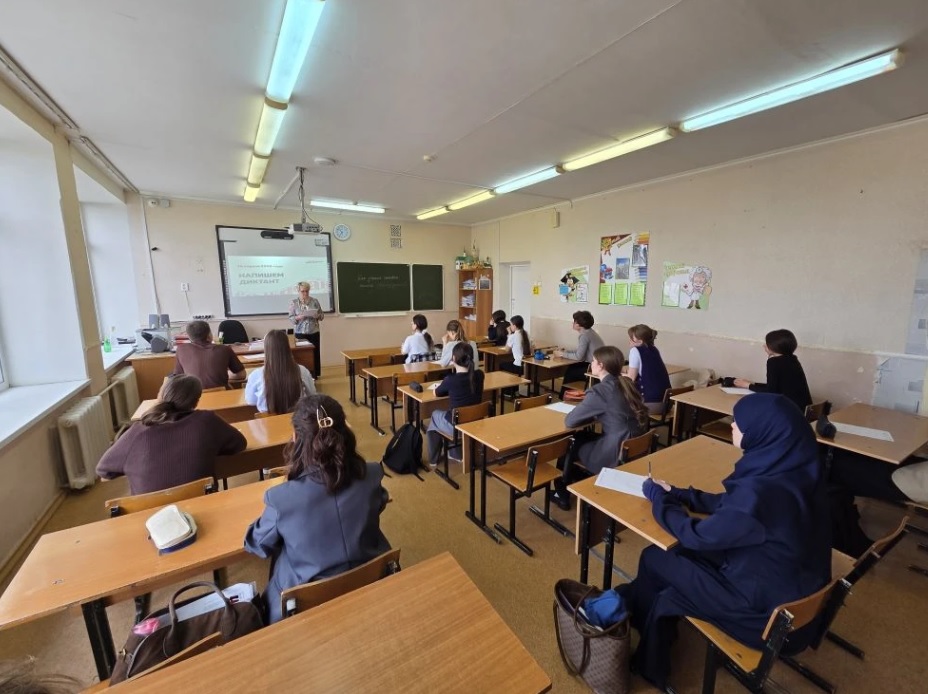 Во время написания диктанта ребята сосредоточенно следили за чтением, стараясь точно передать все нюансы текста. Атмосфера была одновременно напряжённой и вдохновляющей: каждый понимал, что участвует не просто в проверке знаний, а в масштабном культурном событии.