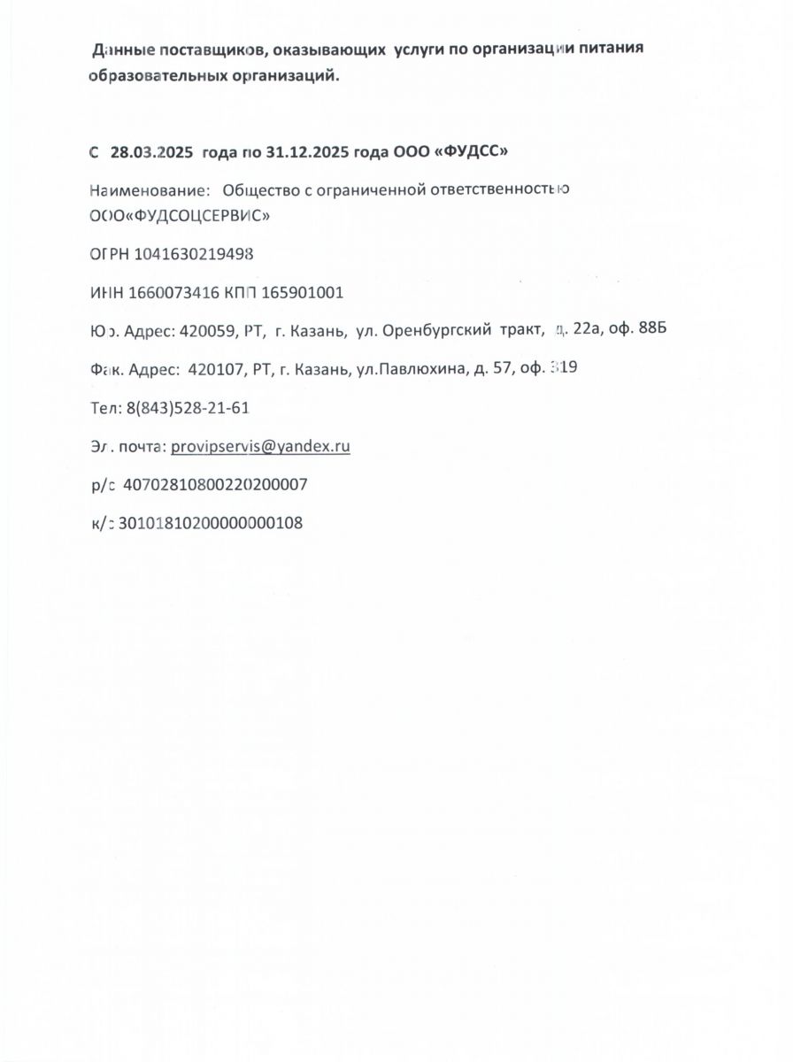Перечень юридических лиц и индивидуальных предпринимателей, оказывающих услуги по организации питания.