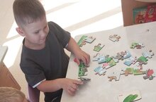 В группе много разных пазлов на любую тему. Ребята готовы их собирать в любую свободную минуту. Собирание пазлов очень полезно для развития ребёнка.