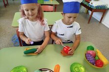 Наши ребята закрепляют знания об овощах о фруктах. Игры "Сварим борщ", "Нарежем салат".