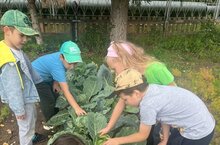 Есть у нас огород. Там морковка, капуста растет. Помидоры, кабачок и горох. Урожай у нас не плох!