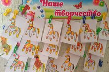 Воспитанники детского сада познакомились с творчеством народных мастеров - филимоновской игрушкой. Изготовили из пластилина барашка, а на изодеятельности учились расписывать силуэт филимоновской лошадки.