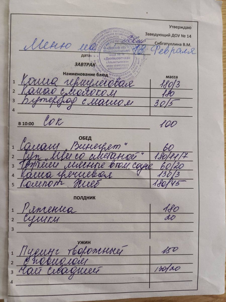 Ежедневное меню