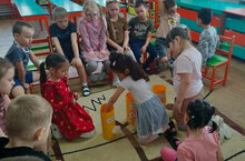 С воспитанниками детского сада прошло занятие по экологии "Сортировка мусора", дети в игровой форме сортировали мусор.