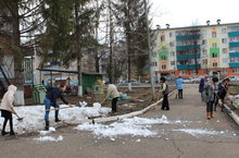 Все сотрудники детского сада дружно приняли участие в уборке прилегающей территории.