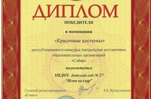 Поздравляем коллектив ДОУ с очередной победой! На этот раз в республиканском конкурсе театральных коллективов образовательных организаций "Сайяр", где был представлен спектакаль по мотивам сказки А.Алиша "Болтливая утка". Благодарим воспитателей по обучению детей татарскому языку Султанову Н.Р. и Халимову Г.А. и музыкального руководителя Костину А.В. за подготовку детей!