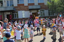 1 июня в детском саду прошел праздник посвященный Дню защиты детей под названием "Территория хорошего настроения". Идея этого веселого праздника состояла в том, что на большой площади каждый ребенок мог найти свое место, которое обеспечит ему хорошее настроение. Вся территория детского сада была поделена на 5 зон: танцевальная, спортивная, творческая, интеллектуальная и русские народные игры. В каждой зоне детей встречали сказочные персонажи, которые развлекали ребят. Закончился праздник подведением итогов конкурса "Песочные постройки", в котором активное участие приняли все возрастные группы ДОУ.