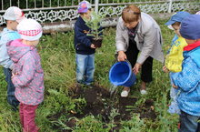24 июля старшая группа занималась озеленением участка. На территории детского сада были посажены ели.