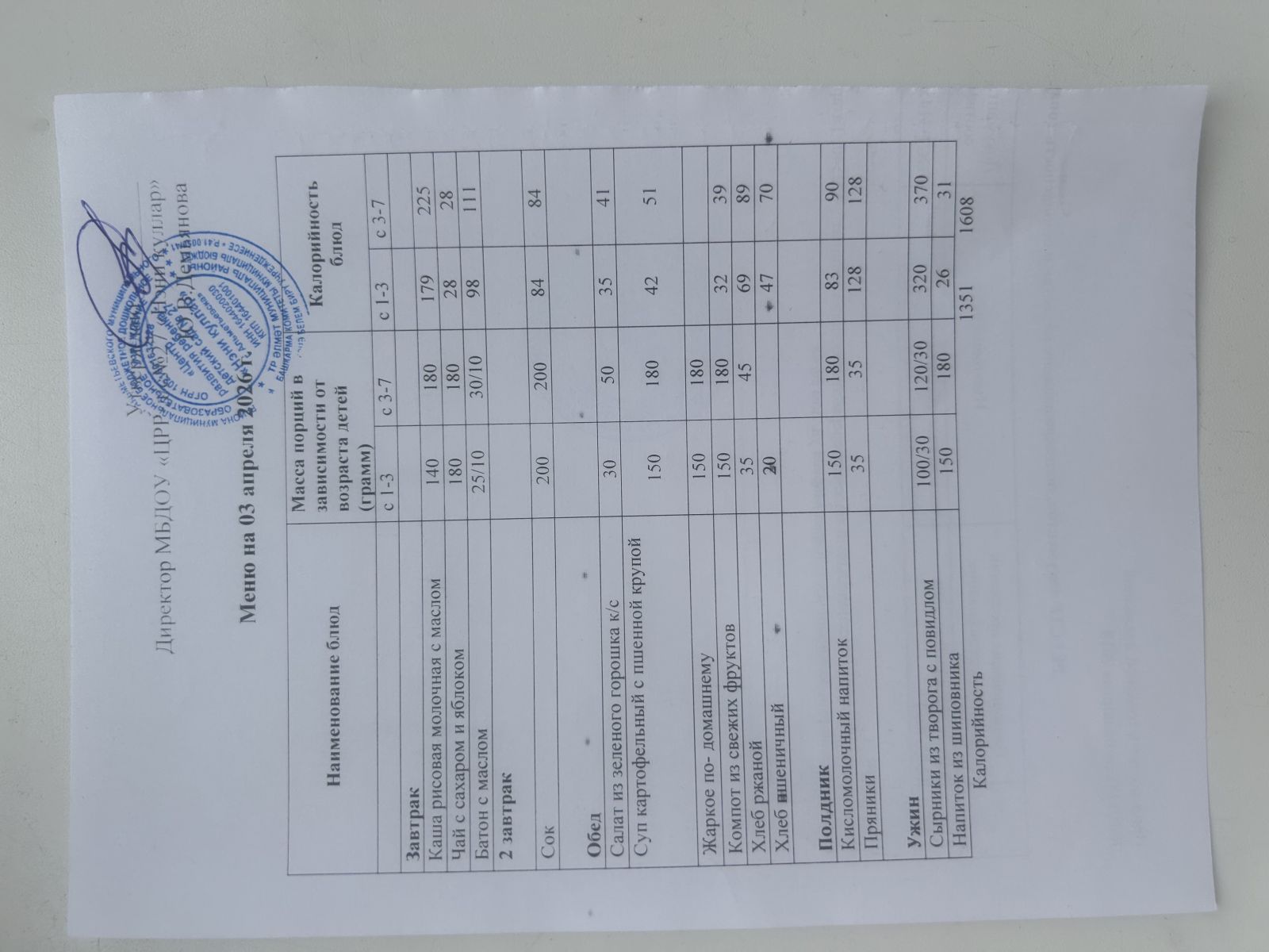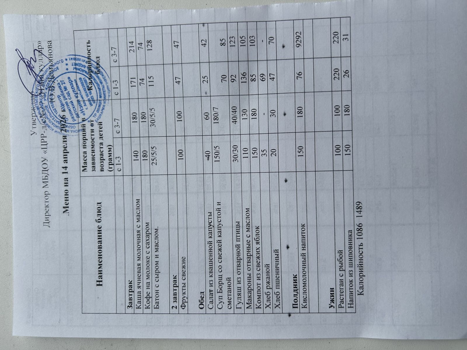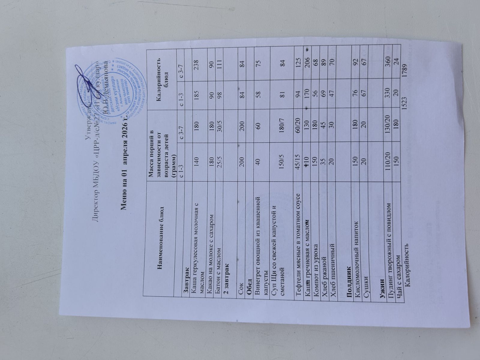 Ежедневное меню 2024 г.