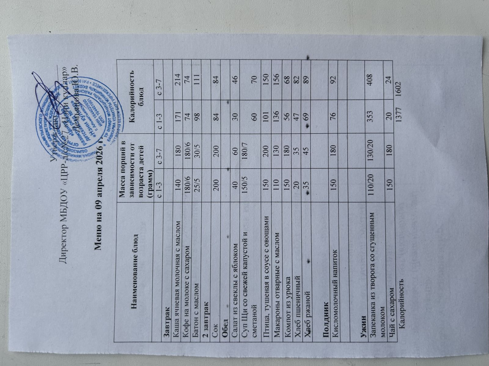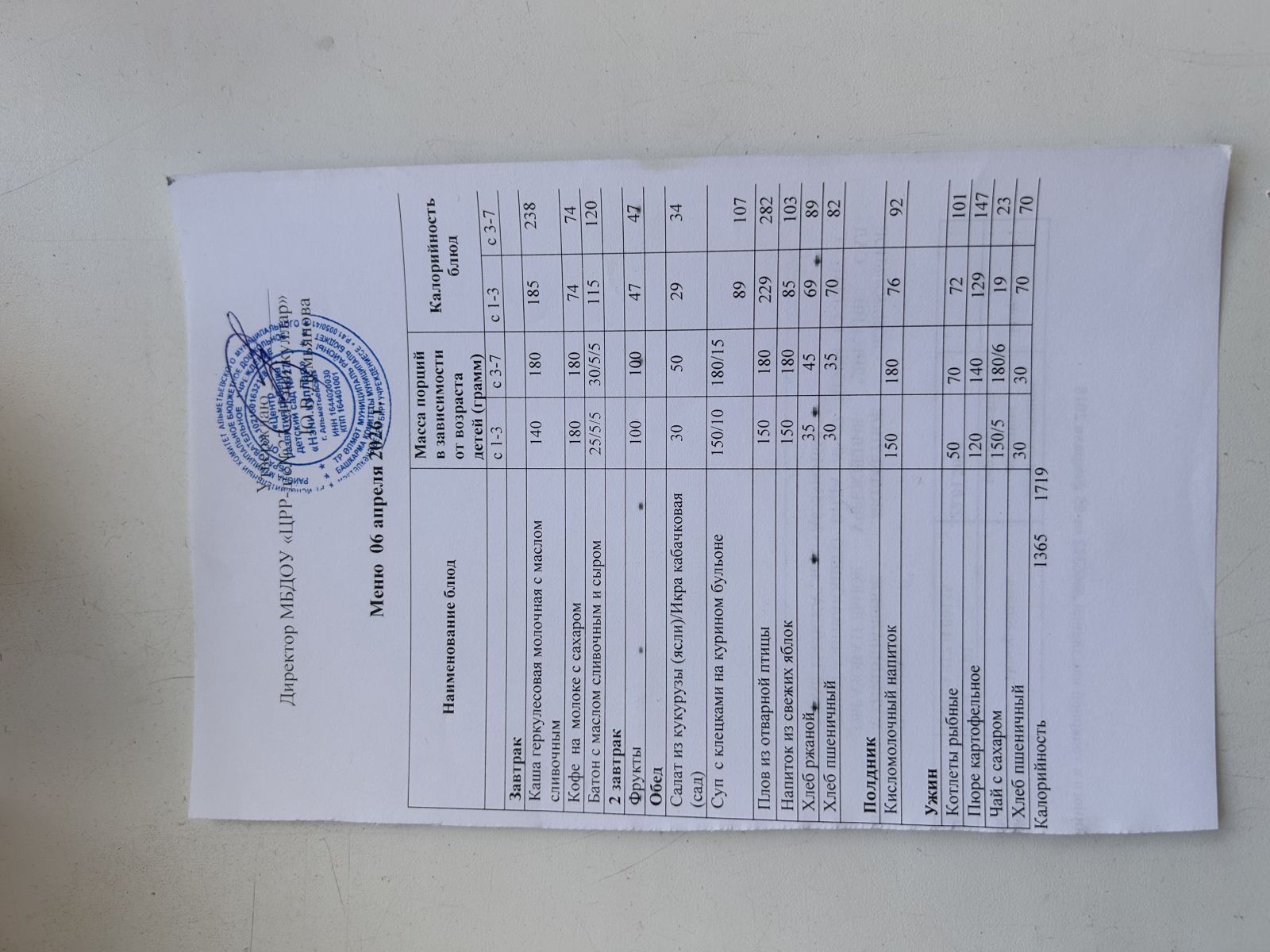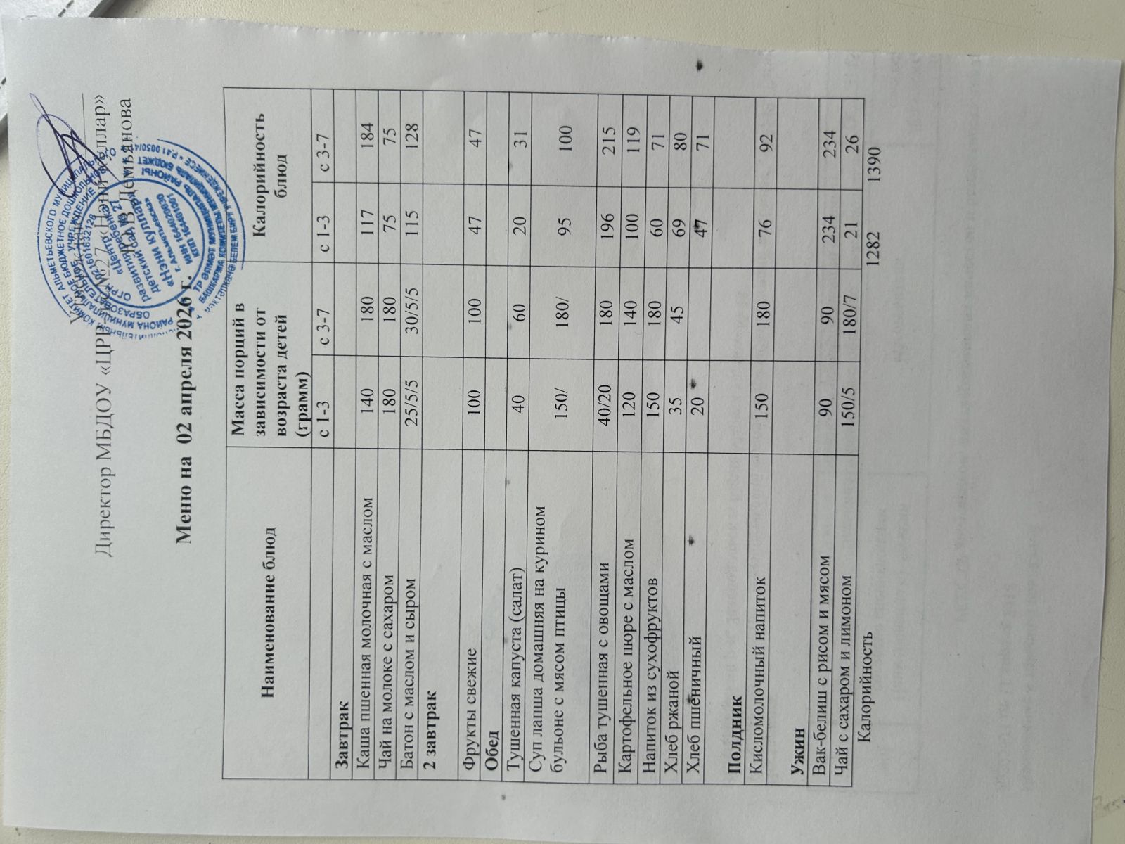 Ежедневное меню 2024 г.