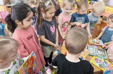 В "День дарения книги" дети средней группы "Капитошка " посетили малышек первой младшей группы "Улыбка" и с радостью подарили свои любимые книги.
